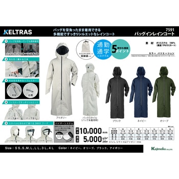 手の甲をカバーし袖口のズリ上りも防ぐ手甲カバー、前裾部分にはファスナーの隙間からの雨の浸入を軽減する三角布、背面右肩にリフレクターなど便利な機能が付いています。