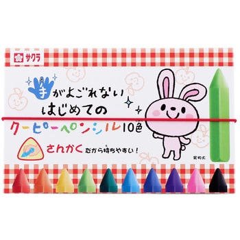ベタつかず手が汚れません。また、塗りカスが少なく周囲を汚しにくくなっています三角形で太い形のクーピーペンシルのため、力の弱い幼児が楽しく描け、正しい持ち方もしやすい設計です折れにくく、たっぷり描くことができます幼児のお絵描きに適した10色セットです持ち運ぶとき散らばりにくいゴム付きケースです配色:#19 あか、#5 だいだいいろ、#3 きいろ、#27 きみどり、#29 みどり、#125 みずいろ、#36 あお、#24 むらさき、#20 ももいろ、#49 くろ