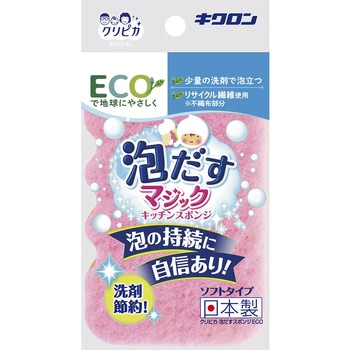 人気の泡だすスポンジシリーズにECOタイプが新登場!従来の波型3層タイプの使い勝手はそのままに、リサイクル繊維の不織布を採用しました。研磨粒子なしなのでキズつけずに汚れを落とします。泡立ちや泡の持続に優れている為洗剤も節約できます。
