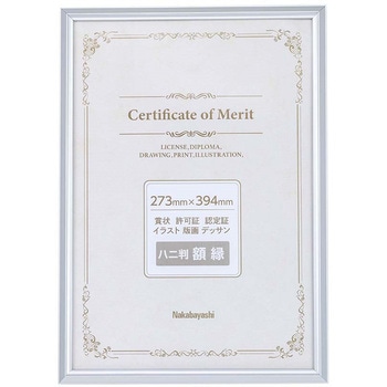 シャープな形状のアルミフレーム。 賞状や証書等を飾るのに適しています。