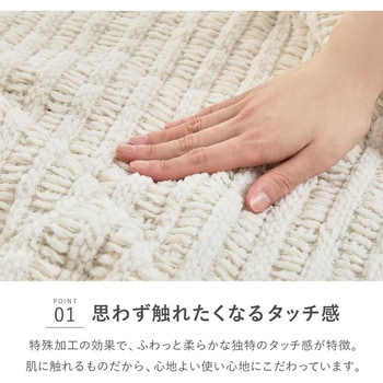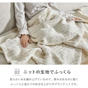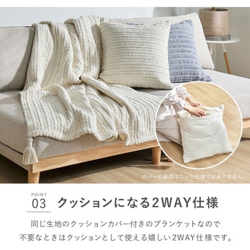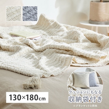 用途特殊加工を施した糸を丁寧に編み上げた、ふっくら柔らかなニットブランケット。厚みがありながら軽やかで、身体に自然に沿う心地よいタッチ感。肌に触れるものだからこそ、思わず触れたくなるやさしい風合いにこだわっています。同色のクッションカバー付きで、使わない時はコンパクトに収納できる2WAY仕様。リビングではブランケットとして、不要な時はクッションとして、おうち時間のリラックスアイテムにぴったり。縦型洗濯機で洗えるため日常使いしやすく、低ホルムで安心感も備えています。インテリアに温かみを添えたい方や、贈り物にもおすすめの一枚です。仕様●ホットカーペット:非対応●洗濯:洗濯機OK(※ドラム式不可)色アイボリー寸法(cm)130×180機能2WAY 収納袋付き組成ポリエステル100%内容量1個