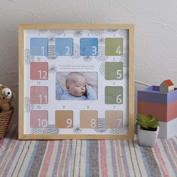 12ヶ月間の子供の笑顔を飾れる。日々変わっていく成長を1ヶ月ごとに記録。1年の成長記録、ペットやウェディングの思い出の記録にも。