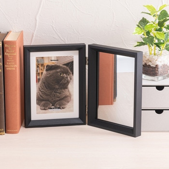 小スペースに置きやすい。機能性を兼ねた鏡付きのフォトフレームです。