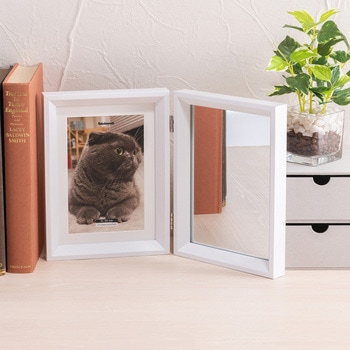 小スペースに置きやすい。機能性を兼ねた鏡付きのフォトフレームです。