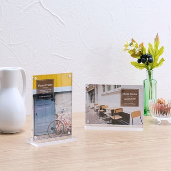 透明感のあるアクリル板が写真をぐっと引き立てる、マグネット式スタンドフォトフレームです。
