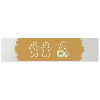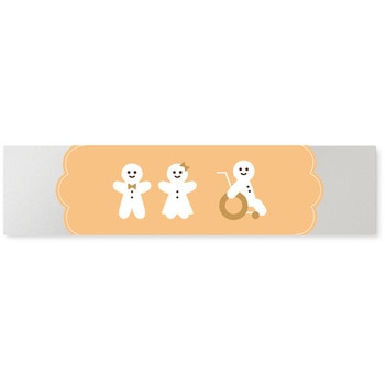 デザイナーがこだわったピクトグラムです。ジンジャークッキーマンのような可愛らしいピクト。背景や配色はクッキーをモチーフにしました。親しみやすく遊び心のあるデザインで店内を明るく彩ります。