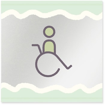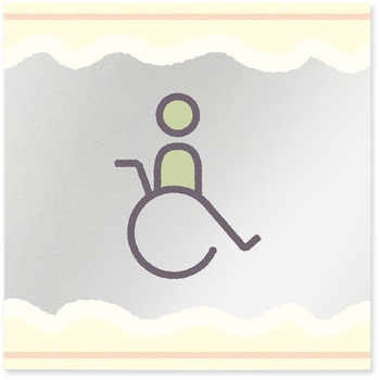 デザイナーがこだわったピクトグラムです。上下のなみなみはクリームやスポンジを使う甘いお菓子をイメージしました。ピクトのラインも表情をつけ、柔らかい印象のサインを目指しました。