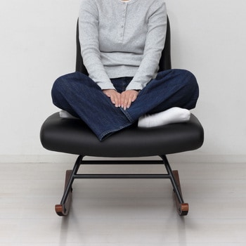 心地良い揺れでリラックスできるロッキングチェア。背もたれはセパレートタイプでフィット感があります。座面は体重を分散するポケットコイル仕様なので、快適な座り心地。床面をキズつけにくい脚裏シール付。背もたれ・座面はお手入れが簡単な合成皮革。あぐらで座れるゆったり座面、脚は高級感のある天然木。