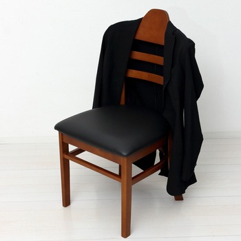 背もたれはハンガー形状ですので、型崩れを気にせず上着を掛けられます。ハンガー部分はかばんを掛けられるよう、2ヶ所に凹みがあります。床面をキズつけにくい脚裏シール付。フレームは温かみのある天然木、座面はお手入れが簡単な合成皮革。使い勝手の良い同色2脚セット。既存のテーブルに合わせやすいシンプルデザイン。