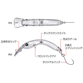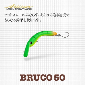 【デッドスローのみならず、あらゆる巻き速度で。スピード領域の拡大で、さらなる釣果を絞り出すニョロ系クランク】*高アピール低波動アクション:水をかき過ぎず適度に逃がしながらボディにワイドによじるアクションで、遠くの魚を惹き付ける視覚的なアピール力を発揮しつつも、チェイスしてきた魚を警戒させず口を使わせる柔らかい水流を発生。*広範囲対応リトリーブスピード:ニョロ系クランクとして、デッドスローリトリーブでもレスポンス良くボディをワイドによじるアクションを得意としながらも、中速巻きや速巻きでも破綻しない安定したアクションを実現。【ブルーコ50ならではの効果的な使用法】1ニョロ系クランクとしてスローに一定速度で巻くのが基本的な使い方ですが、対応巻きスピード領域の広さを活かして、デッドスローから速巻きまで様々な巻きスピードを試してみることが重要。その日その時の魚が好むスピードを見つけることができれば、ひとり爆釣も。2一定巻きに追いかけてくるものの、あと一歩で喰いきらない魚に対しては、「加速巻き」「減速巻き」といったスピード変化を織り交ぜるテクニックが効果的。ニョロ系クランクの枠を超えた対応巻きスピード境域の広いブルーコ50だからこそのなせるワザ。 【特徴】*ボディ:浮力を持たせるための太めのボディ。飛行姿勢やアクションが不安定になりがちなニョロ系独特の弧を描くボディの弱点を解消するため、凹凸をなくしたシンプルな表面形状に設計。空気や水の流れが整うことで、飛行姿勢やアクションの安定感を高めています。*テール:後部先端を尖らせた形状によってキャスト時の空気抵抗を軽減。ニョロ系クランクの弱点であるキャストのしにくさを軽減しました。*ウエイト:弧を描くボディの中央・頂点にのみ1点集中でタングステンウエイトを配置。重心位置を上げることで、ボディが倒れ込みながらよじれる動きが発生。*リップ:平面と曲面を組み合わせた立体的な形状。平面部で確実に水を掴むことで素早く立ち上がり、デッドスローリトリーブでもしっかり動きます。巻きスピードを上げていくと、曲面部で適度に水を逃してくれるため、速巻きでも動きが乱れません。*フックアイ&スプリットリング:リアアイはスプリットリング2連式でフックが縦向きになるよう縦アイに設計。2連式によって可動域が広くなり、バラシを軽減します。また、フックがボディから離れるため、後ろからのついばみバイトやじゃれつきバイトにもフックアップ率が向上。出荷時はリアワンフック仕様ですが、さらにフックアップ率を上げる2フックセッティングを可能にするフロントアイを設置。*フック:負荷が掛かった際に開きを抑える平打ちベンドと、スムーズな滑りのフッ素コートが組み合わさり抜群の刺さりやすさを実現したEGオリジナルエリアトラウトフックの#8を搭載。