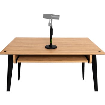 SH-DESKTOP1ラウンドベースマイクスタンドは、耐衝撃性に優れたブラックパウダーコーティングされたスチール製で、SHUREマイクを安定して保持できるように設計されており、放送、ポッドキャスト、ライブストリームなど、さまざまな用途に使用いただけます。