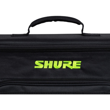最大 2 台のワイヤレス マイク システムを収納できる Shure パッド入りキャリーバッグ