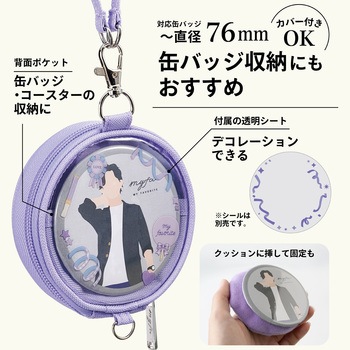 取り外し可能なストラップが付いた円形のポーチで、カプセルトイなどの小物を入れるのに最適です。
