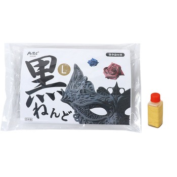 黒いねんどと金色の絵の具のセットです。金色の絵具で着色することにより、アンティークのような風合いに仕上げることもできます。