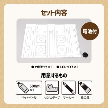 ワークショップで人気の「ペットボトルランタン工作キット」に、進行マニュアルが付きました!白色LEDを採用し、連続点灯約24時間の明るさを楽しめます。マニュアルには、指導法や時間配分、準備するものも明記されているため、ワークショップや地域イベント、親子参加型イベントなど幅広い場面で活躍します。防災教育や自由研究にも活用できる便利なアイテムです。【用意するもの】500mlのペットボトル、セロハンテープ、着色するもの(マーカー・絵の具など)