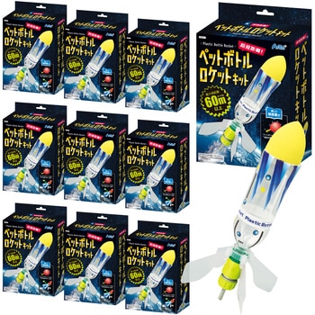 水と空気圧で飛ぶ迫力満点のペットボトルロケットキットです。組み立ても簡単で、科学の力を身近に感じながら遊べます。翼の取り付けや水の量で飛距離が変化し、工夫する面白さも体験できます。付属の解説書で原理も学べるので、子どもから大人まで一緒に楽しめる教材です。嬉しい10個セットで、ワークショップや地域イベントなど幅広い場面で活躍します。【対象年齢】8歳以上【必要なもの】炭酸飲料用ペットボトル(500ml)1本、自転車用空気入れ、水、レインコート