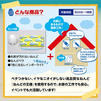 ワークショップで大人気の「ねんどでつくるアニマルランタン」の20個セットです。ヒヨコやウサギなどかわいいアニマルのランタンがつくれる工作キットです。7色に変化するライトが幻想的な雰囲気を演出します。抗ウイルス加工のねんどを採用しており、安心安全に製作できます。工作や自由研究、ワークショップにもおすすめのアイテムです。作品づくりに便利な全作例の4面写真とヒヨコの作り方がついています。専用マーカー付きで届いてすぐにイベントを開始でき、子どもから大人まで楽しめる簡単工作です。思い出づくりやプレゼント制作にもぴったりで、子ども会や親子イベントなど、手軽に始められる人気のワークショップ素材です。