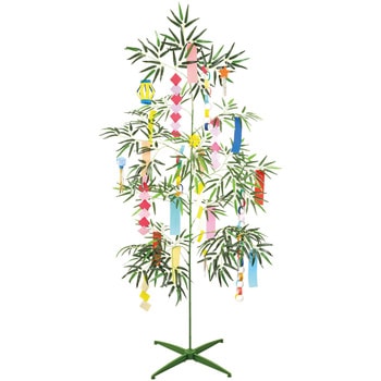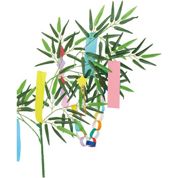 短冊付き!すぐに始められる七夕特大笹セット!全長約2mの特大笹に、短冊やこより、マーカーがセットになった七夕装飾キットです。必要なアイテムが同梱されているので、手間なく七夕イベントを実施できます。学校、商業施設、地域行事など100人規模のイベントにも対応しています。