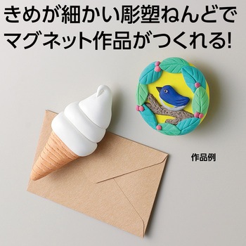 彫刻刀で削ることができ、磨くとツヤの出る粘土でマグネットが作れます。粘土を使用して、マグネットを作れるキットです。粘土は乾燥後、彫刻刀ややすり等で自由に加工できます。コシがあり、形が決まります。手につかず様々な芯材によくつきます。乾燥後は石像のような質感になり、磨くとツヤが出ます。自由に着色できます。乾燥後、ねんどをつけ足せます。