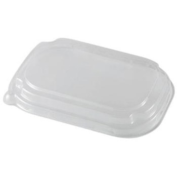中身がクリアに見え、見栄えが良い。重箱型(仕切有)の紙容器用フタ。※本体は別売り。