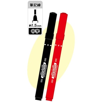 中字の油性マーカー3本パック。インク色:黒×2本、赤×1本。 筆記線径:約1.5ミリ。