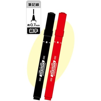 細字の油性マーカー3本パック。インク色:黒×2本、赤×1本。 筆記線径:約0.7ミリ。