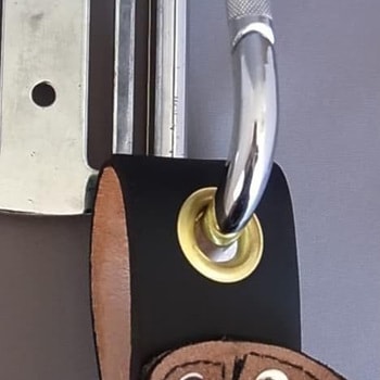 シンプルな溶接棒入れですが、底部分にステンレス製カップで補強。アイレット穴により、ベルト通しに連結できます。