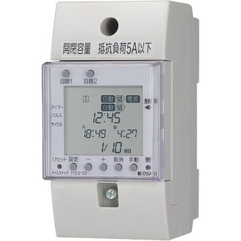 仕様【時計部(時刻表示)】24時間制(0時00分~23時59分)、【時計部(精度)】月差±15秒以内(周囲温度25℃において)質量(g)200取付方式協約取付・IECレール取付・表面取付共用使用温度範囲(℃)-10~+50出力【回路数】2回路(無電圧C接点)、【接点容量/抵抗負荷】AC250V 5A以下、DC30V 5A以下、【接点容量/誘導負荷】AC250V 2A以内(COSΦ=0.4以上)、DC30V 2A以内(L/R=7ms)定格電圧(V)AC100-200共用(AC80~240)寸法(幅W×高さH×奥行D)(mm)50×100×75制御24時間制御設定方式【カレンダ・時計】曜日、時、分、【サイクル制御】有(ON,OFF時間各1~90分)、【パルス出力】有(1~90秒)、【動作数】2回路合計最大20動作(「入」「切」組合せ)、【最小設定間隔】1分、【設定単位】1分(サイクル1~90分,パルス1~90秒)周波数50/60Hz共用使用湿度範囲85%以下(結露、氷結しないこと)消費電力(VA)AC200V/60Hz時 1以下(0.5W以下)制御周期24時間停電補償累計停電期間 5年間内容量1個