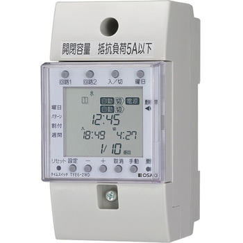 仕様【時計部(時刻表示)】24時間制(0時00分~23時59分)、【時計部(精度)】月差±15秒以内(周囲温度25℃において)質量(g)200取付方式協約取付・IECレール取付・表面取付共用使用温度範囲(℃)-10~+50出力【回路数】2回路(無電圧C接点)、【接点容量/抵抗負荷】AC250V 5A以下、DC30V 5A以下、【接点容量/誘導負荷】AC250V 2A以内(COSΦ=0.4以上)、DC30V 2A以内(L/R=7ms)定格電圧(V)AC100-200共用(AC80~240)寸法(幅W×高さH×奥行D)(mm)50×100×75制御24時間制御設定方式【カレンダ・時計】曜日、時、分、【動作数】各可変パターンごとに最大10動作(「入」「切」組合せ)、【最小設定間隔】1分、【設定単位】1分周波数50/60Hz共用使用湿度範囲85%以下(結露、氷結しないこと)消費電力(VA)AC200V/60Hz時 1以下(0.5W以下)制御周期週間停電補償累計停電期間 5年間内容量1個