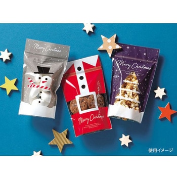 クリスマス柄の小袋。チャック付きでお菓子の保存に便利、自立するので売り場にも並べやすい。