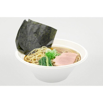 バガスと竹から作られた環境に優しい麺丼容器です。食材やスープの色が映える白色でおいしさを引き立てます。絞り形状でボリューム感を演出します。