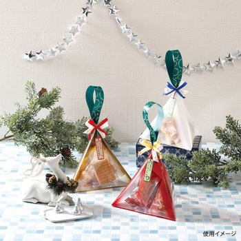 見た目にインパクトがあるテトラ型のクリアケースです。他にも色違いがあり中身や季節に併せて使い分けいただけます。角に穴が空いていますので、リボンを通せばさらにインパクトがアップします。(リボン別売)