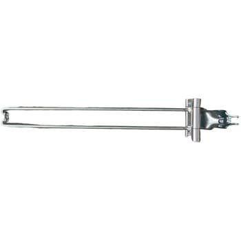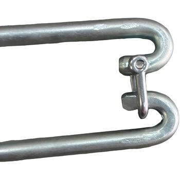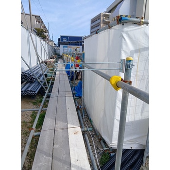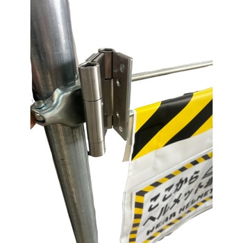 別売の「ポケット垂れ幕」と併用することで、現場内の歩行を妨げることなく進入抑制と注意喚起を同時にできる。建地の単管に取り付けるだけの簡単設置。バーが前後に可動するため、歩行の邪魔にならない 規格:8Φ×55W×580L 材質:鉄