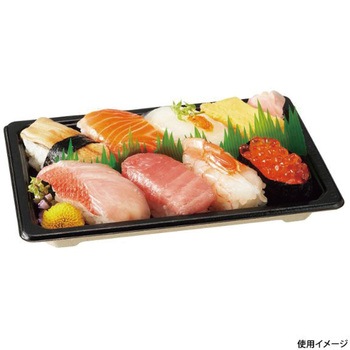 バガスモールドに黒いフィルムを貼る事でネタの見映えが良くなり、寿司エコ容器に最適です。