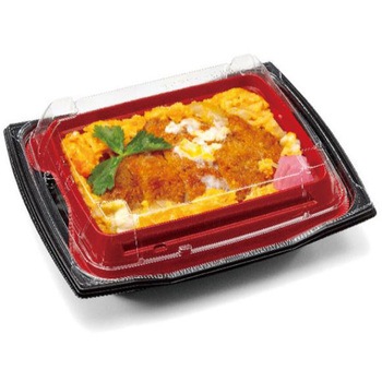 お重にぴったり。環境対応素材です。主役のトンカツなど具材を目立たせて 魅せるお重容器。※フタ別売りです。