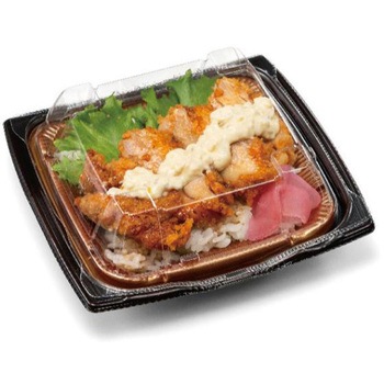 お重にぴったり。環境対応素材です。主役のトンカツなど具材を目立たせて 魅せるお重容器。※フタ別売りです。