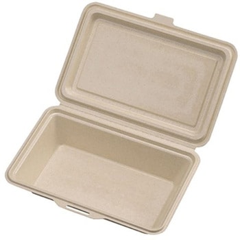 仕切りがない底深な一体折容器で、単品メニューにも、お弁当にも!幅広いメニューにご使用ください。 パルプモールド(紙)で出来たシャープなデザインのランチボックスです。 特殊モールド製法により両面を滑らかにすることで紙粉が出にくく、内側CPPラミ加工により、耐油性、防水性があります。電子レンジ対応です。 フタの縁が内側に落ちているので汁もれしにくい設計です。本体と蓋の境目に切り取り線があり、切り離しができます。