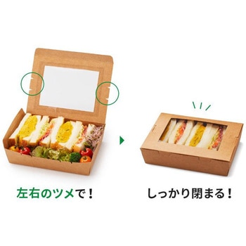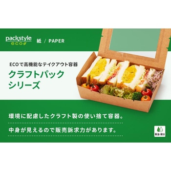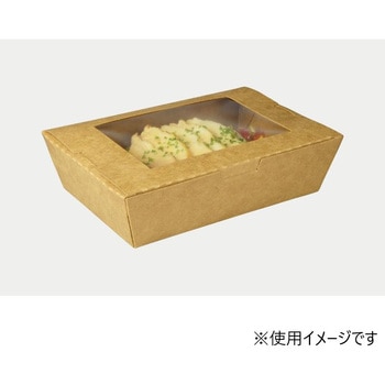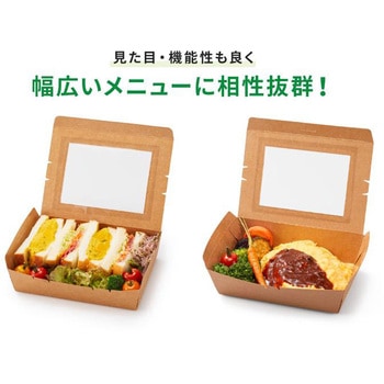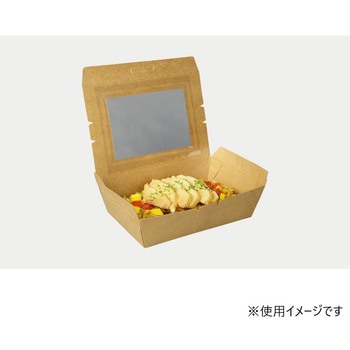 クラフト紙のフードパック。テイクアウトはもちろん、窓付で中身も見えるので、陳列販売にも対応できます。レンジ対応不可。窓フィルムは非防曇です。未晒しタイプ。
