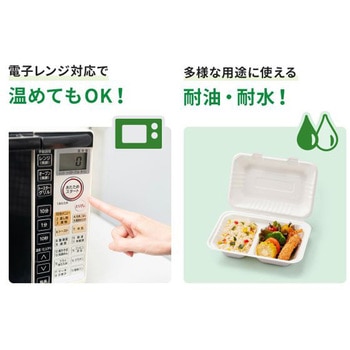 主原料のバガス(サトウキビの搾りかす)と竹の混合素材を使用したホワイト基調の業務用・使い捨てランチボックスです。お弁当・パスタ・サラダ・スイーツなどさまざまなメニューに対応。サイズ・レイアウト別に11種類展開しています。耐油・耐水性あり、電子レンジにも対応しているのでテイクアウトにぴったりです。※内側にコーティング加工がされていない為、米飯など粘り気のある内容物を直接入れると、材質の特性により食品に素材が付着する場合がございます。用途に応じて、クッキングペーパーやワックスペーパーを併用頂くと安心してご使用いただけます。
