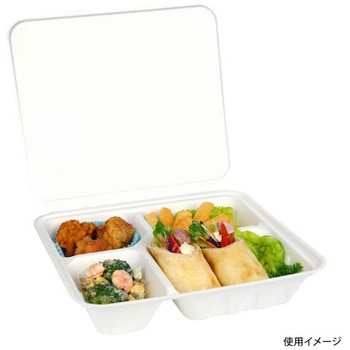 主原料のバガス(サトウキビの搾りかす)と竹の混合素材を使用したホワイト基調の業務用・使い捨てランチボックスです。お弁当・パスタ・サラダ・スイーツなどさまざまなメニューに対応。耐油・耐水性あり、電子レンジにも対応しているのでテイクアウトにぴったりです。※内側にコーティング加工がされていない為、米飯など粘り気のある内容物を直接入れると、材質の特性により食品に素材が付着する場合がございます。