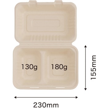 竹とバガス(サトウキビの搾りかす)の混合素材からできた、植物由来の業務用・使い捨てテイクアウトランチボックス。お惣菜など軽食からパスタなどしっかりめのランチまで幅広く活用できます。耐油耐水性、電子レンジにも対応しています。内面のPLAフィルム加工でお米の付着を防ぎます。