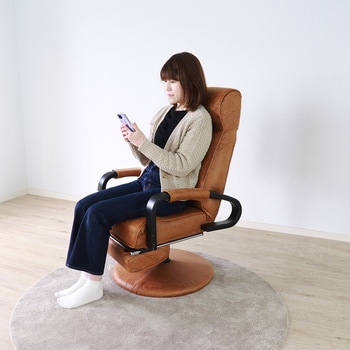 曲線美の木肘付&フットレスト付き回転高座椅子です。背もたれは手元レバーガス式無段階リクライニングです。ヘッドも14段階ギア式で体勢に合わせて頭をしっかり支えます。座面はガス厚昇降式でワンタッチで40~46cmに調整できます。