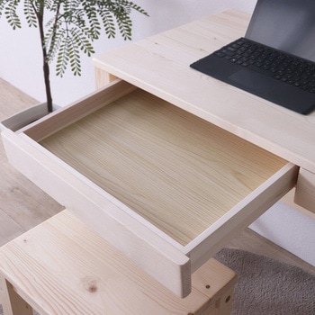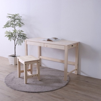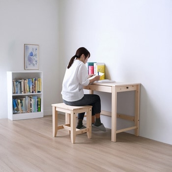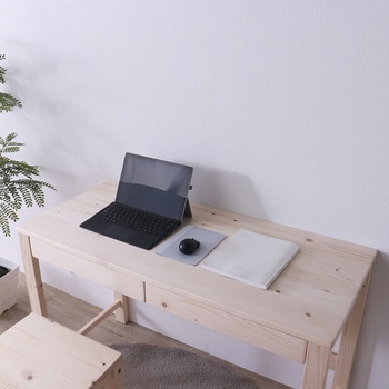 横幅110cmのシンプルなデスクです。材質には天然木パイン材を使用し、塗装には環境に優しい水性アクリル塗料を使用しております。サイドフック付きです。