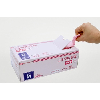 使い捨て手袋 ニトリル手袋ライト粉無 M ピンク パックスタイル