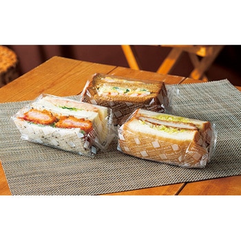 マチ付きの角底形状により、パンやサンドイッチを安定して収容でき、陳列時の見栄えも良くなります。