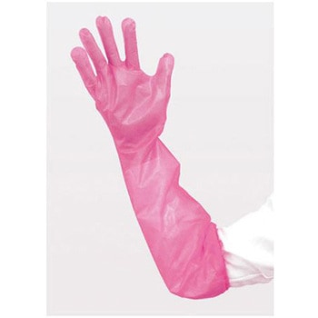 ポリ手袋 PS ポリグローブロング 袖口ゴム付 ピンク パックスタイル