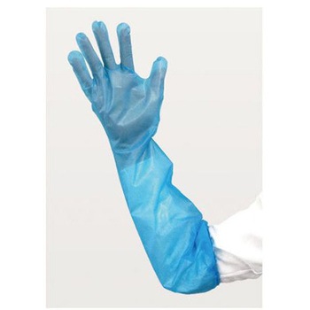 ポリ手袋 PS ポリグローブロング 袖口ゴム付 青 パックスタイル