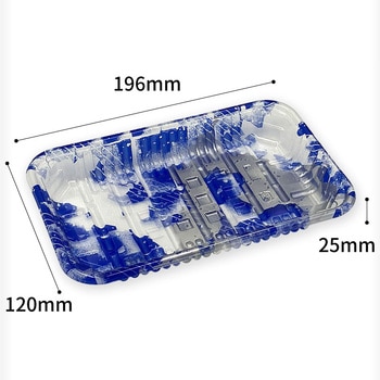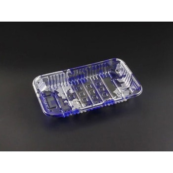 PET素材なのでラップやドリップが必要な商品にもおススメです。新鮮さが増す、年間通して使える青色。
