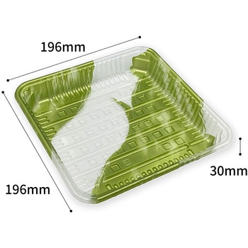 PET素材なのでラップやドリップが必要な商品にもおススメです。濃い色のフードマットにも負けず、年間通して使える緑色。