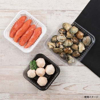 クリアな透明汎用トレー。PET素材なのでラップやドリップが必要な商品に。